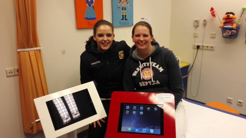 Vrijdag 19-02-2016 samen met onze maatschappelijk partner Vitessebetrokken een 2de iPad in het Radboud ziekenhuis te Nijmegen gebracht. Deze krijgt, net zoals de 1ste, een plek in de onderzoekskamer zodat de kinderen tijdens vervelende onderzoeken en ingrepen een spelletje kunnen spelen of een filmpje kunnen kijken op youtube. Vitessebetrokken werd vertegenwoordigd door de medewerkers Janneke en Eva.